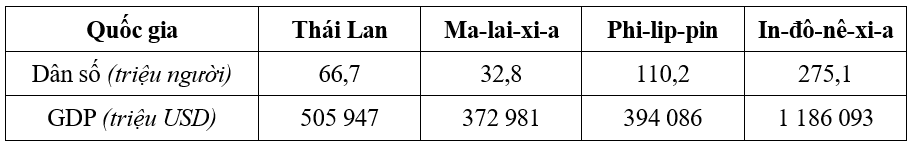 Cho bảng số liệu: DÂN SỐ VÀ GDP CỦA MỘT SỐ QUỐC GIA NĂM 2021 (Nguồn: Niên giám thống kê