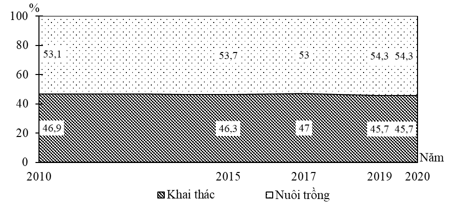 Cho biểu đồ về sản lượng thủy sản khai thác và nuôi trồng của nước ta, giai đoạn 2010 - 2020: