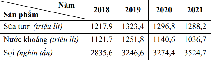 Cho bảng số liệu: MỘT SỐ SẢN PHẨM CÔNG NGHIỆP CHỦ YẾU CỦA NƯỚC TA GIAI ĐOẠN 2018 –