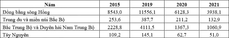 DOANH THU DU LỊCH LỮ HÀNH CỦA MỘT SỐ VÙNG NƯỚC TA GIAI ĐOẠN 2015 - 2021