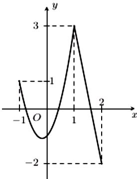 Cho hàm số \(y = f\left( x \right)\) liên tục trên đoạn \(\left[ { - 1;2} \right]\) và có đồ thị như