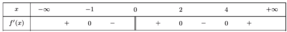 Cho hàm số \(y = f\left( x \right)\) liên tục trên \(\mathbb{R}\) có bảng xét dấu như sau:Số điểm
