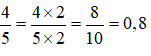 Quy đồng phân số về phân số có mẫu là 10 rồi chuyển về phân số thập phân