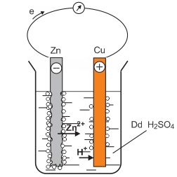 Bước 2: Nối thanh Zn với thanh đồng bằng dây dẫn điện cho đi qua một điện kế.