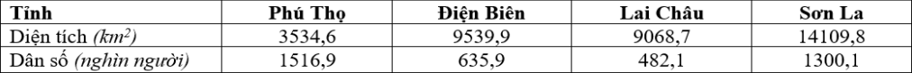 Cho bảng số liệu: DIỆN TÍCH VÀ DÂN SỐ CỦA MỘT SỐ TỈNH Ở NƯỚC TA, NĂM 2022 (Nguồn: Niên