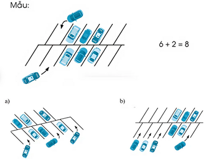 Từ số lượng xe ban đầu ta đếm thêm lần lượt từng xe để tìm được kết quả của phép tính cộng.