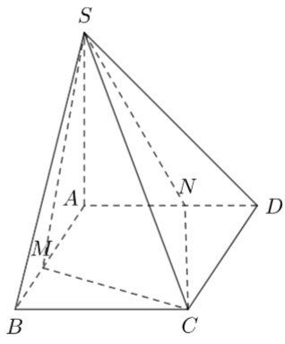Cho hình chóp \(S.ABCD\) có đáy là hình vuông cạnh bằng 4, \(SA = 4\) và đường thẳng \(SA\) vuông