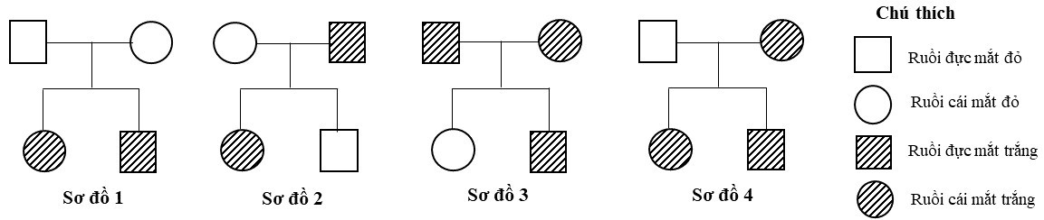 Sơ đồ phả hệ nào sau đây cho biết sự di truyền của tính trạng mắt trắng do gen lặn trên NST X ở ruồi giấm?