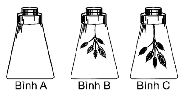 Một học sinh đã thực hiện một thí nghiệm như sau: chuẩn bị 3 bình thủy tinh có nút kín A, B
