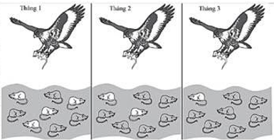 Hình vẽ bên mô tả quá trình săn mồi của một con diều hâu trong 3 tháng ở một quần thể