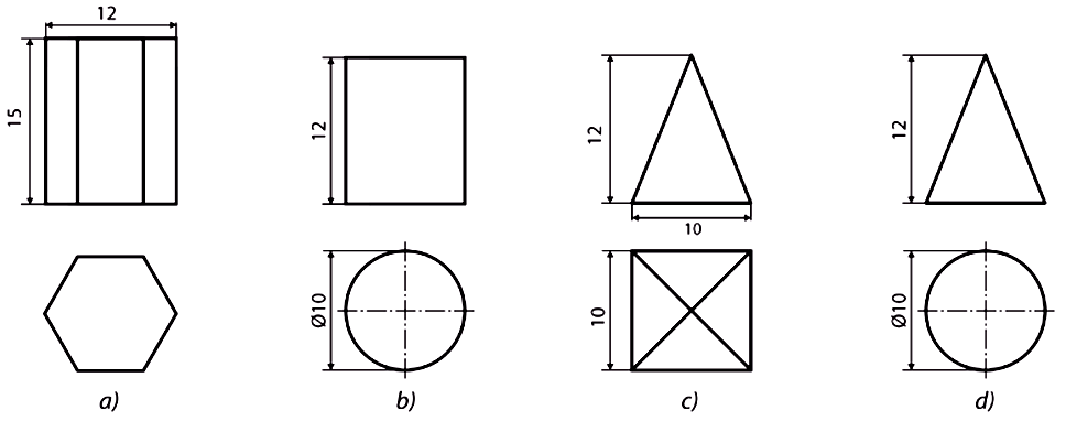 Mô tả vật thể trong không gian có hai hình chiếu vuông góc trong hình dưới đây.