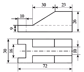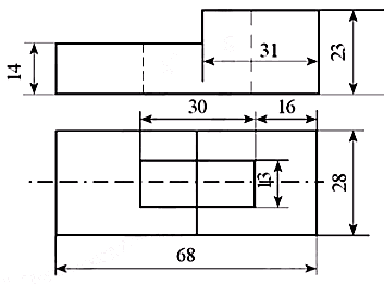 b) Vật thể: Gá lỗ chữ nhật.