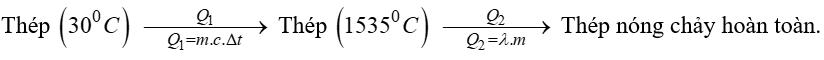 + Sử dụng các công thức: $\left\{ \begin{array}{l} {Q = mc\Delta t} \\ {Q = \lambda m} \end{array} \right.$