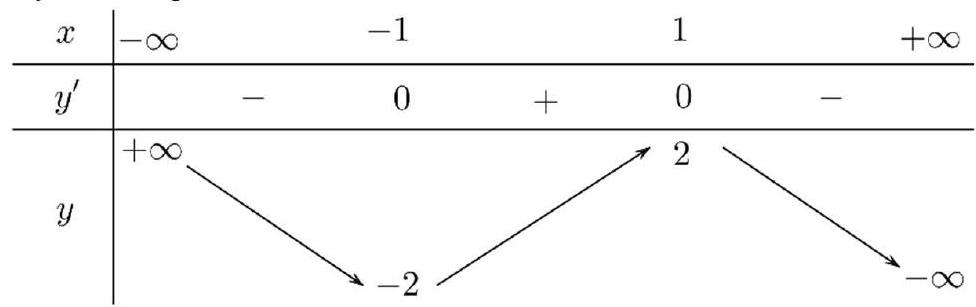 Hàm số nào dưới đây có bảng biến thiên như