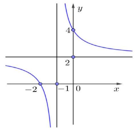 Cho hàm số \(y = \dfrac{{ax + b}}{{cx + d}}\) có đồ thị là đường cong trong hình vẽ bên dưới. Tọa độ giao điểm của đồ thị hàm số đã cho và trục hoành là