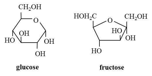 | a) Trong ảnh trên, glucose và fructose đều tồn tại dạng vòng α. | ||
