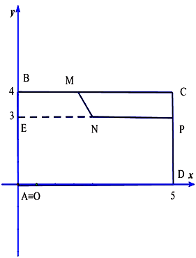 Cho hình chữ nhật \(ABCD\) có \(AB = 4,AD = 5\). Cắt hinh chữ nhật theo đường gấp khúc \(MNP\) với