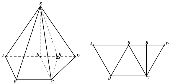 Cho hình chóp \(S.ABCD\) có đáy là hình thang, \(\left( {AD//BC} \right),AD = 2a\),\(AB = BC = CD = a\), các