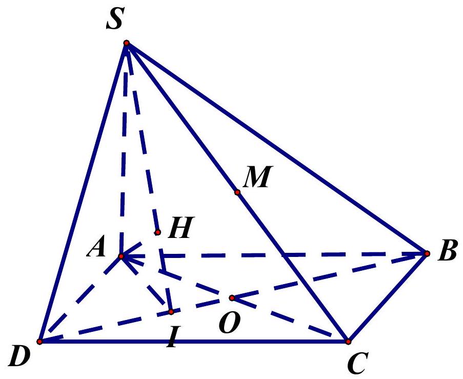 Cho hình chóp \(S.ABCD\) có đáy \(ABCD\) là hình chữ nhật, \(AB = 2a,\,\,BC = 4a,\,\,SA\) vuông góc với