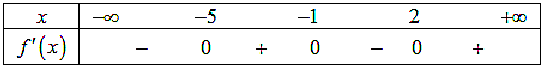 Cho hàm số \(f\left( x \right)\) có đạo hàm là \(f'\left( x \right) = \left( {x - 2} \right)\left( {x + 5} \right)\left( {x + 1} \right)\). Hỏi hàm số \(f\left( x \right)\) đồng biến trên khoảng nào dưới đây?