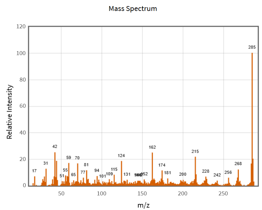 Morphine là một loại thuốc giảm đau thuộc họ thuốc phiện được tìm thấy tự nhiên ở một số thực vật và đồng vật, bao gồm cả con người. Morphine tác động trực tiếp lên hệ thần kinh trung ương để giảm cảm giác đau. Cho công thức cấu tạo và phổ MS morphine dưới đây.