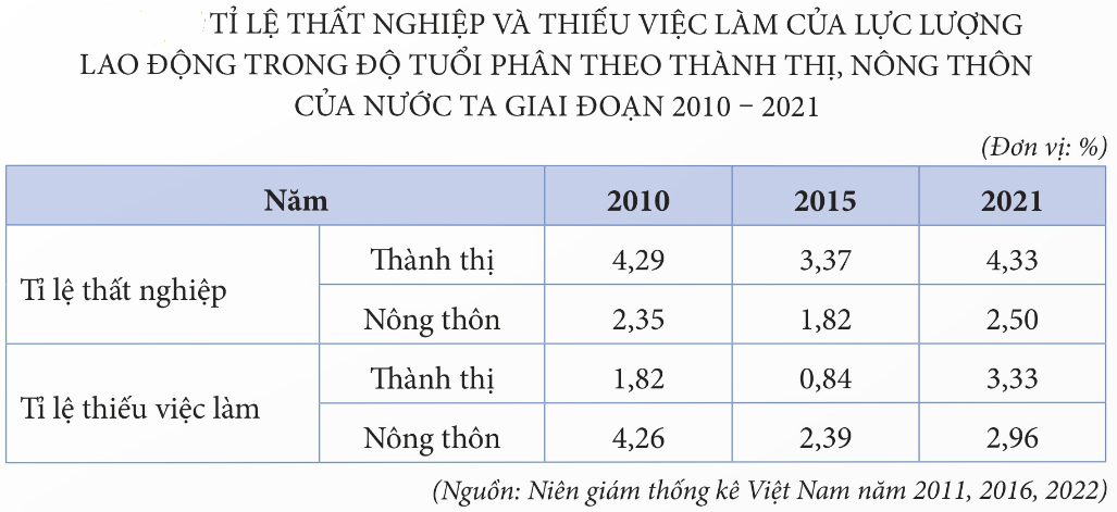 Dựa vào bảng số liệu trên, cho biết năm 2021 nước ta có bao nhiêu triệu lao động thất nghiệp? (Kết quả lấy đến 1 chữ số sau dấu phẩy thập phân)