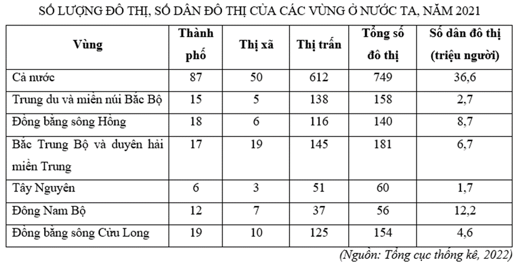 | d) Đến năm 2021, nước ta có 6 đô thị trực thuộc trung ương. |
