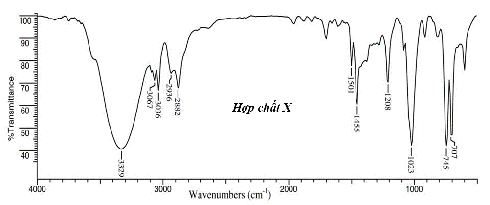 Hợp chất X có tác dụng kháng khuẩn, chống vi sinh vật kí sinh trên da (chấy, rận,…). X có công thức phân tử C7H8O, có chứa xòng benzene. Oxi hóa hoàn toàn X bằng CuO nung nóng thu được hợp chất hữu cơ Y. Phân tích X, Y trên phổ IR được kết quả dưới đây. Phát biểu nào dưới đây về X, Y đúng hay sai?