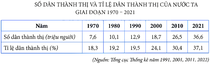 | c) Số dân thành thị năm 2021 tăng 481,6% so với năm 1970. | ||