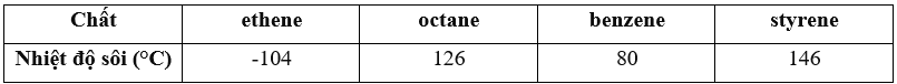 Nhiệt độ sôi của một số chất được cho trong bảng sau: