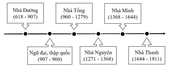 a) Lập sơ đồ thể hiện tiến trình phát triển của lịch sử Trung Quốc từ thế kỉ VII đến giữa thế kỉ XIX?