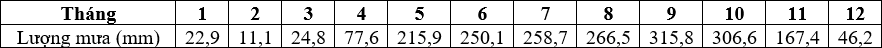 Cho bảng số liệu sau: Lượng mưa trung bình các tháng trong năm của trạm khí tượng Tân Sơn Hòa