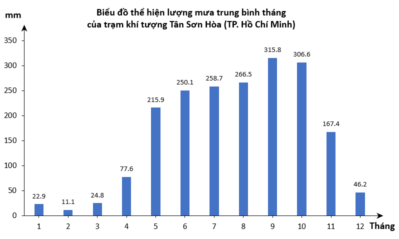 Em hãy vẽ biểu đồ thể hiện lượng mưa trung bình tháng của trạm khí tượng Tân Sơn Hòa (TP Hồ Chí Minh)