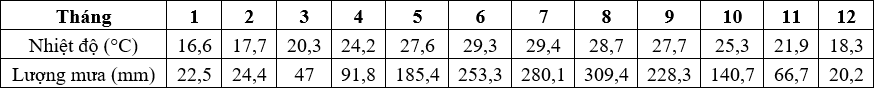 Nhiệt độ, lượng mưa trung bình các tháng trong năm của trạm Hà Nội