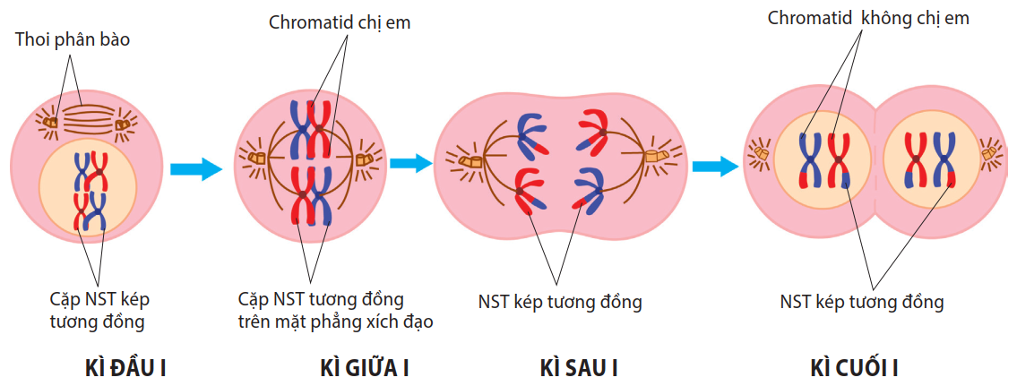 Các em xem lại sơ đồ: Các giai đoạn của giảm phân I.