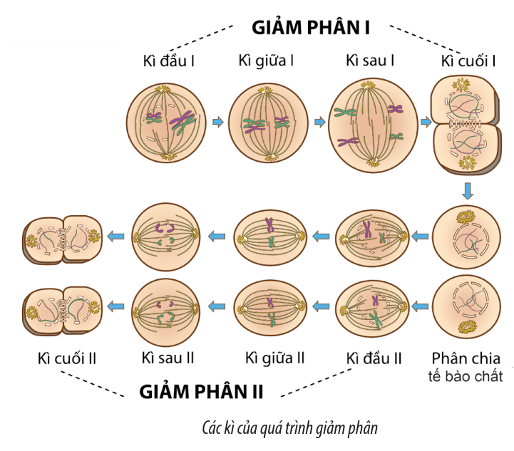 Dựa vào sơ đồ: Các giai đoạn của giảm phân.