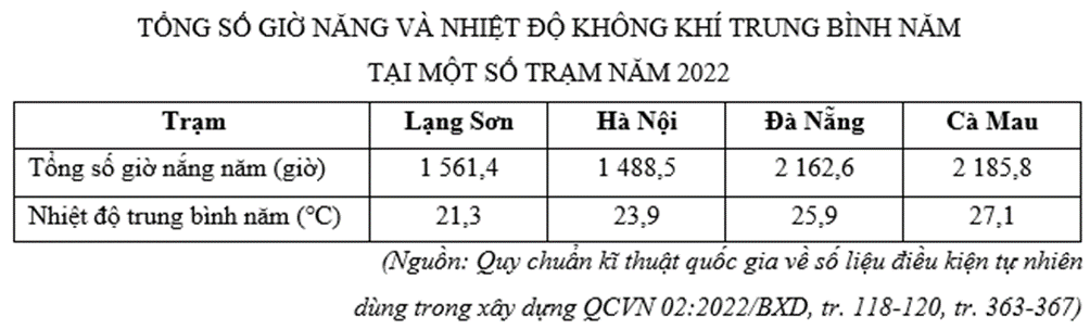 | a) Tổng số giờ nắng và nhiệt độ trung bình năm tăng dần từ bắc vào nam. | ||