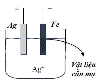 | b) Ag gắn với cực dương của bình điện phân, Fe gắn với cực âm của bình điện phân. Cả hai điện cực cùng được nhúng vào dung dịch chứa ion Ag+. | ||