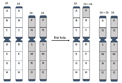 Chuyển đoạn: Là đột biến dẫn đến một đoạn của NST chuyển sang vị vị trí khác trên cùng một NST, hoặc trao đổi đoạn giữa các NST không tương đồng