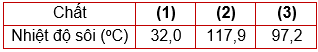 Ba chất (1), (2), (3) là các hợp chất của carboxylic acid, alcohol và ester (không theo thứ tự) có cùng khối lượng phân tử. Xác định chất là ester, biết nhiệt độ sôi của các chất như sau: