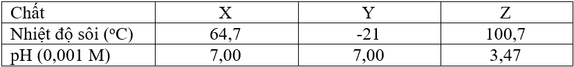 Cho X, Y, Z là các chất khác nhau trong số 3 chất: methyl alcohol, formaldehyde, formic acid và các tính