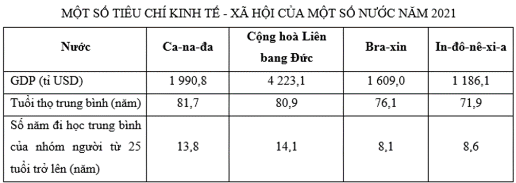 | b) Dựa vào các tiêu chí trên, không thể thấy được sự khác biệt trong phát triển kinh tế - xã hội của các nước. | ||