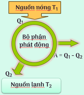 Một động cơ nhiệt có nguồn nóng cung cấp nhiệt lượng Q1 cho bộ phận phát động để bộ