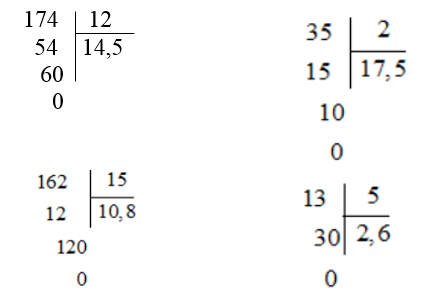 Đặt tính rồi thực hiện chia một số tự nhiên cho một số tự nhiên mà thương tìm được là số thập phân.