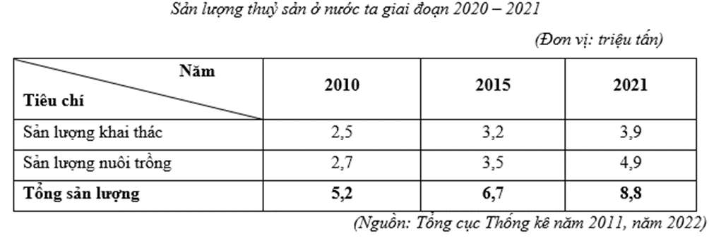 | c) Xu hướng là giảm tỉ trọng sản lượng thuỷ sản nuôi trồng và tăng tỉ trọng sản lượng thuỷ sản khai thác. | ||