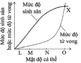 Hình bên thể hiện mức độ sinh sản và mức độ tử vong (đơn vị tương đối) theo mật độ