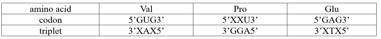 Biết rằng, alen B đã xảy ra một đột biến điểm tạo ra alen b, kết quả làm tăng tỉ lệ uraxin của mARN được phiên mã từ alen b. Mỗi côđon 5'GUG3', 5'XXU3', 5'GAG3' lần lượt mã hóa mỗi loại axit amin là: Val, Pro, Glu. Dựa vào dữ liệu trên, có bao nhiêu nhận định sau đây là đúng?