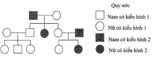 Phả hệ hình bên mô tả sự di truyền của một tính trạng ở người (gồm kiểu hình 1 và kiểu