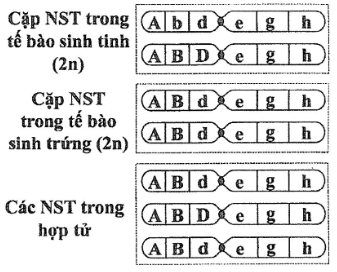 Hình bên thể hiện các NST thuộc cùng một cặp NST tương đồng của một loài động vật ở tế