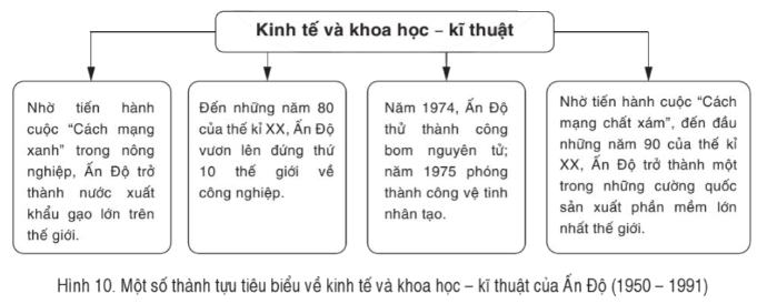| c) Ấn Độ đã phát triển đội ngũ các nhà khoa học, thử thành công quả bom nguyên tử đầu tiên và tham gia “Câu lạc bộ các nước chỉnh phục vũ trụ”. | ||